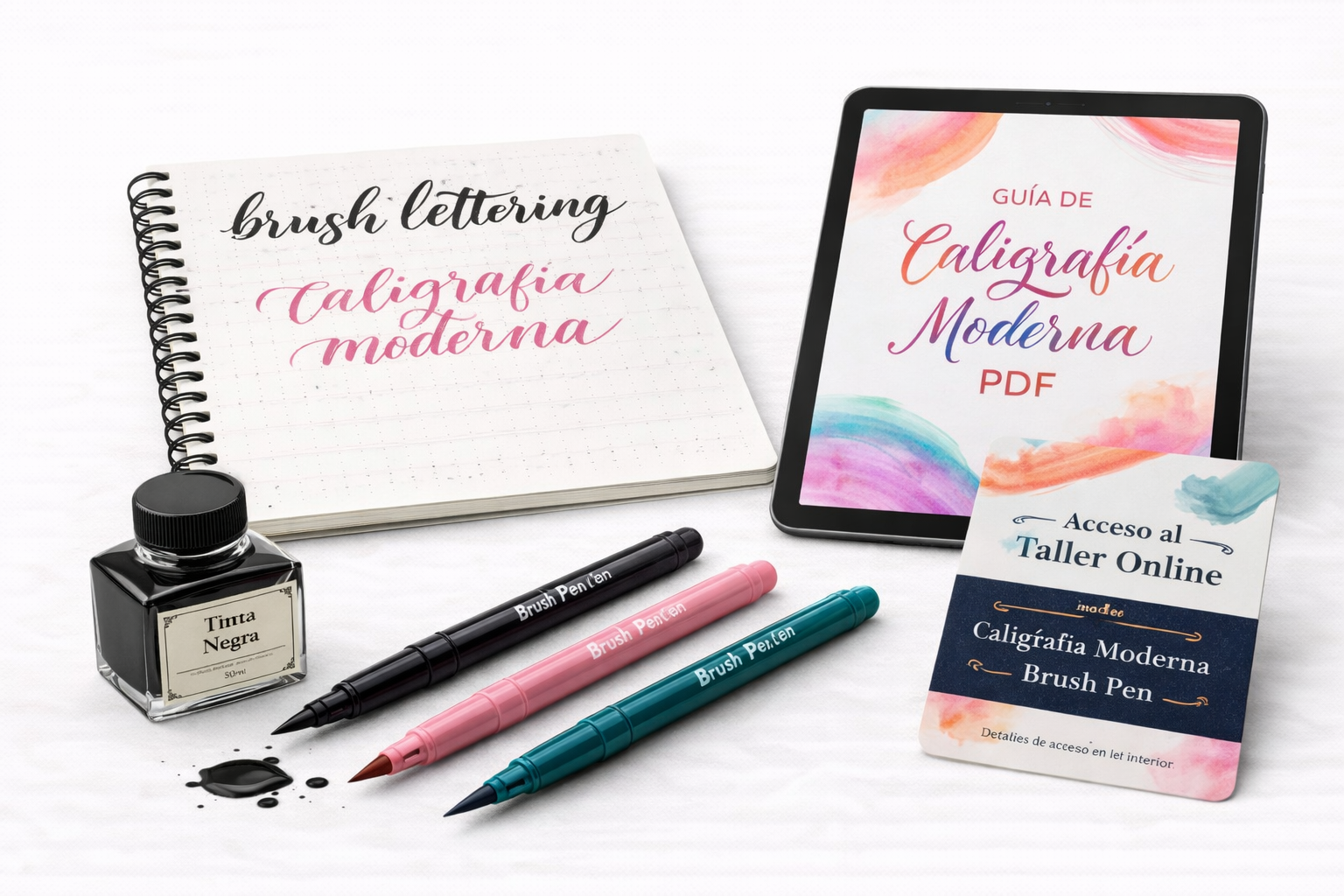 3 brush pens + cuaderno + libro PDF + acceso taller